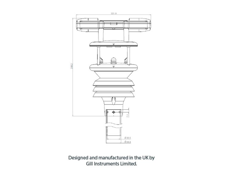 Esta pequena Estação Meteorológica Compacta mensura a Temperatura do Ar, Umidade do Ar, Pressão Barométrica, Precipitação , Direção e Velocidade do Vento com sensores ultra-sônicos que não exigem manutenção, e esta estação compacta já possui um escudo de proteção contra a radiação solar, onde os dados podem ser coletados através de um cabo com protocolo ModBus RS485 RTU, RS232 ASCII ou SDI-12.