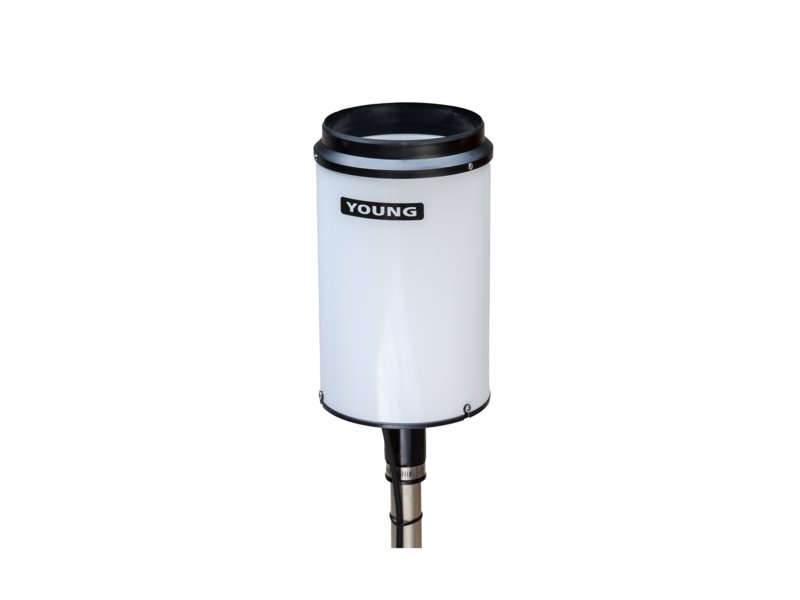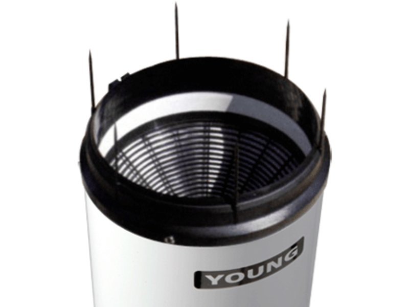 O Pluviômetro de Báscula Young utiliza um mecanismo de balde basculante para medir precipitação de forma simples e eficaz. Possui área de captação de 200 cm² e resolução de 0,1 mm, conforme recomendações da WMO, além de parafusos de nivelamento e nível tipo bullseye para ajuste em campo. A precipitação coletada é descarregada por um tubo de coleta, permitindo a verificação do total acumulado.