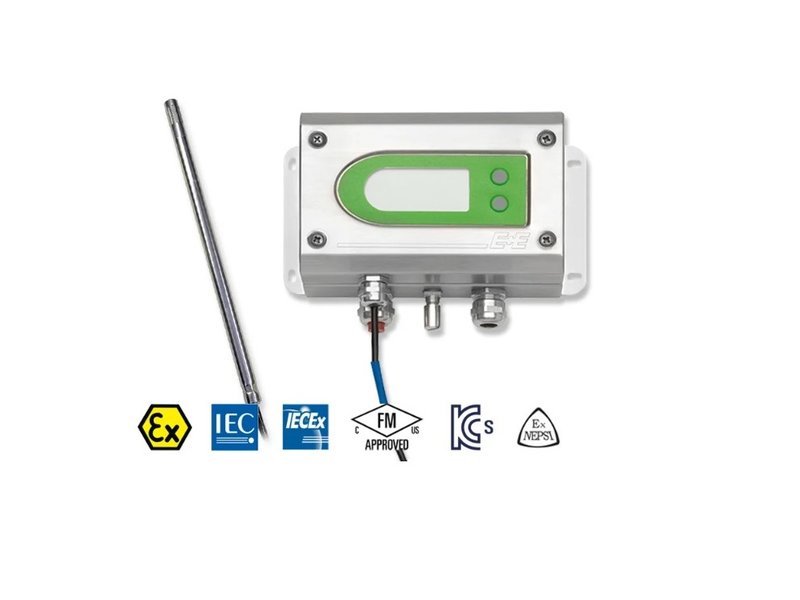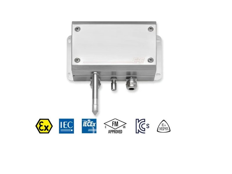O EE100Ex é um sensor projetado para medição precisa de umidade relativa (UR) e temperatura (T) em áreas explosivas (Zona 1), atendendo às certificações ATEX, IECEx, KCs e CSA. Com saídas de 4-20 mA isoladas galvanicamente e tecnologia de 2 fios, o sensor também calcula o ponto de orvalho (Tf) e a temperatura do ponto de congelamento (Td).
